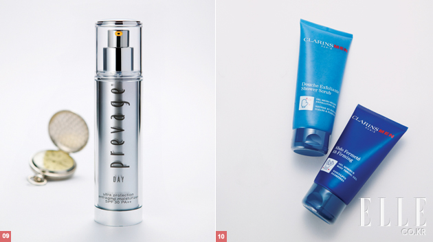 10 CLARINS MAN ab firming & shower scrub 질감★★ 사용감★★ 마무리감★★★ ‘애브 퍼밍’은 복부와 팔처럼 근육을 단련시키고 싶은 부위를 중심으로 발랐는데, 시원하고 피부를 땅기는 느낌이 마치 늘어진 지방과 근육을 긴장시키는 듯했다. ‘스크럽’은 신선한 향기, 각질을 없애주는 미세 입자가 상쾌함을 더해주었던 제품. 일반적인 보디 클렌저보다 사용 후 피부가 한결 매끄러웠고, 보디 로션을 쓰지 않아도 피부가 땅기지 않아 좋았다. 애브 퍼밍. 150ml. 5만원. 스크럽. 200ml. 3만3천원. SU YOUNG