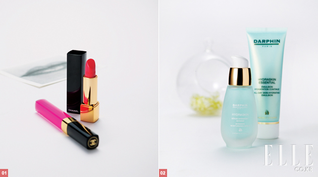 1 chanel rouge allure no.187 & gloss fluo de chanel no.407 질감★★★ 사용감★★ 마무리감★★ 루쥬 알뤼르 187호 지니얼은 형광 빛이 살짝 감도는 코럴 컬러로 노란 피부보단 하얀 피부 위에서 빛나는 컬러를 자랑할 듯. 반면 네온 핑크 컬러의 407호 글로스는 보이는 색과 달리 투명 립글로스를 바른 듯 평범했다. 펄이 들어 있지 않은 대신 도톰하게 발리면서 입술에 볼륨이 살아나기는 하나 톡톡 튀는 상큼함을 원하는 걸들에겐 살짝 실망스러울 수도 있을 듯. 립스틱. 3.5g. 3만9천원. 글로스. 5.5g. 3만6천원. HYUN JOO