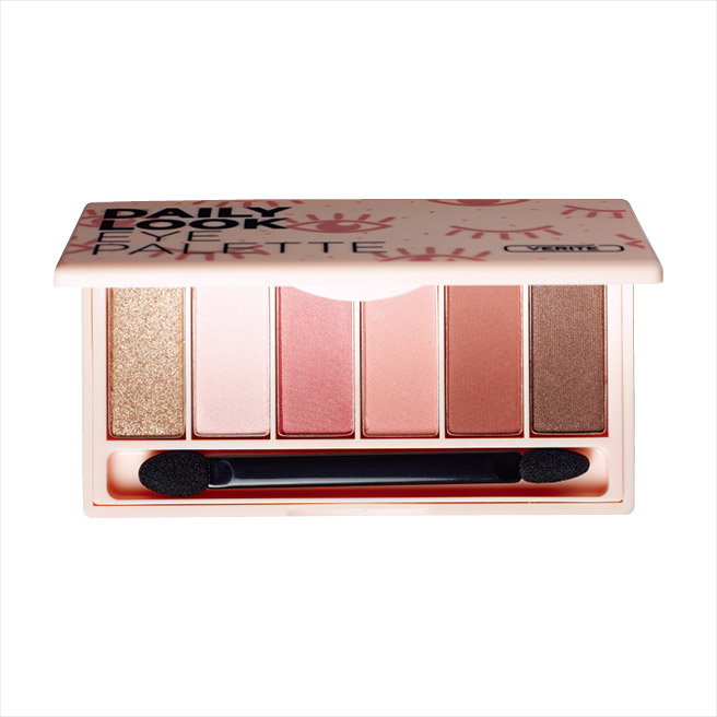 데일리 룩 아이 팔레트, 2호 러블리 핑크, 1만8천원, Verite. 어느 것 하나 버릴 것 없는 여섯 가지 컬러. ‘메알못’을 위해 도포 부위를 그려둔 가이드 필름, 착한 가격까지 대만족.