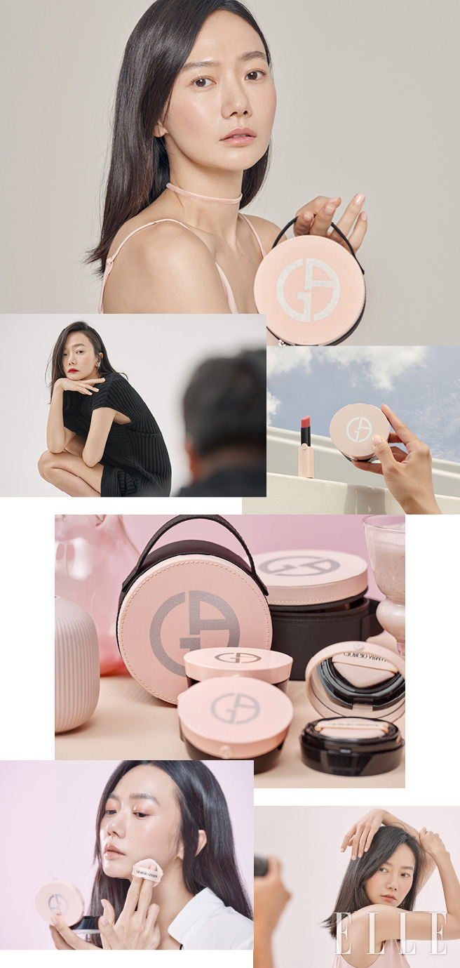 한 없이 사랑스럽다가 강렬한 눈빛으로 자신감 넘치는 존재감을 보여주는 그녀는  조르지오 아르마니 뷰티의 핑크 컬러를 입은 새로운 에센스 톤업 쿠션과 닮아 있다.