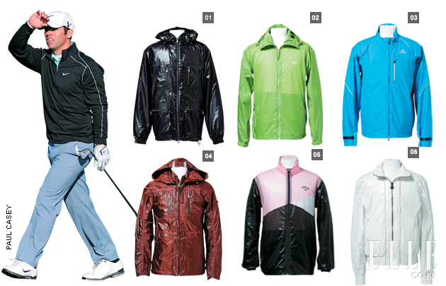 Blocking Wind Rain 방수 기능과 통기성이 뛰어난 웨더 웨어가 골프 룩의 메인 아이템으로 떠오르고 있다. 기능적인 디자인과 감각적인 디테일, 다채로운 컬러감으로 선택의 폭 또한 넓다. 1 넉넉한 길이와 포켓, 후드까지 모든 것을 갖춘 사파리 윈드브레이커 가격미정 제냐 스포츠 2 매우 얇은 소재로 착용감이 가볍다. 18만8천원 윌링 이동수 3 심플하면서도 활동성을 높인 디자인이 특징. 37만8천원 아디다스 4 독특한 색감과 디테일한 장식이 패셔너블하다. 가격미정 시리즈 5 베이비 핑크와 블랙의 비대칭 매치가 세련된 느낌. 29만9천원 캘러웨이 6 스포티한 짧은 블루종 스타일의 방수 소재 점퍼. 31만9천원 푸마 블랙 스테이션