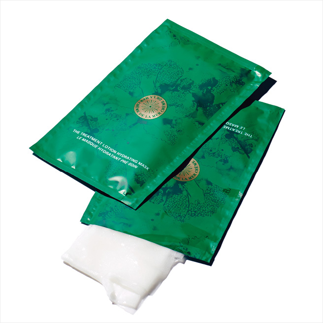 해초 발효 성분이 민감한 피부를 진정시킨다. 시트의 부들부들한 감촉도 으뜸. 트리트먼트 로션 하이드레이팅 마스크, 6매 19만5천원대, La Mer.