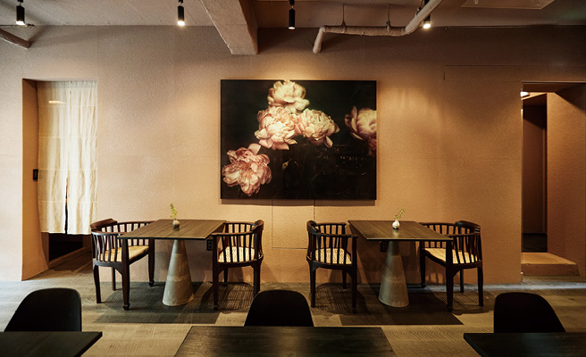 잠원동 한적한 거리, 눈에 띄는 회색 벽이 세워졌다. 내부는 전혀 보이지 않고 간판은 겨우 엄지 크기만 한 이곳은 라이프스타일 리빙 숍 챕터원의 세 번째 매장인 ‘챕터원 에디트’. 부부인 두 대표가 새로운 공간을 마련하면서 세운 방침은 메뉴나 갤러리 작품처럼 두 손으로 직접 만들어내는 것들로만 채운, 의식주 전체를 아우르는 공간이어야 한다는 것. 그래서 국내 장인들의 작품을 만날 수 있는 리빙 숍 외에 수공의 미학을 보여주는 카페 ‘파운드로컬’도 함께 자리했다. 고요하게 분주한 손놀림으로 독특한 질감의 컵에 담아 내준 브루잉 커피를 음미하다 보면 카페만을 위해 작곡한 음악에 귀 기울이게 되고, 분명 누군가의 작품일 의자와 테이블의 남다른 한 끗도 눈에 들어올 터. 저녁 7시가 되면 무릉도원 같던 카페는 바와 비스트로로 바뀐다.
