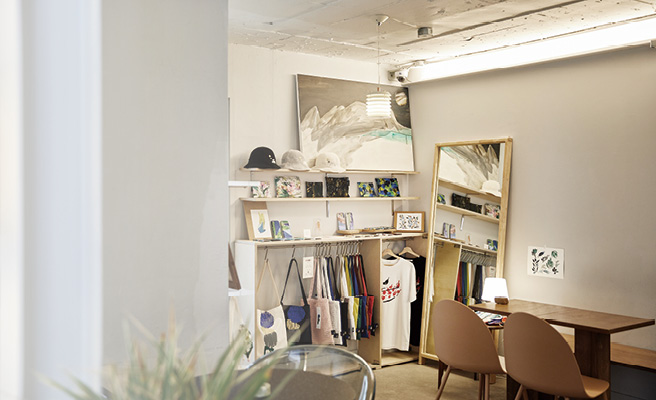 순수미술과 의상을 전공한 세 명의 공동대표가 꾸린 카페 ‘크림슨코크’. 공간 곳곳에는 직접 그린 편안한 무드의 그림들이 걸려 있고, 쇼룸에는 풀잎과 귤, 돌담길 등이 그려진 패브릭 제품들과 스마트폰 케이스가 열 맞춰 진열돼 있다. 좀 더 가까이 다가가 그곳에 녹아든 섬세한 붓 터치를 보고 있으니 눈앞에 있는 것이 작품인지 제품인지 판단이 잘 서지 않을 정도. 손수 제작하는 데 애 좀 먹었다는 주방 바와 목재 가구들부터 건강한 재료로 묵직하게 만든 ‘크림 케이크’, 오렌지 꽃잎을 올린 그림 같은 ‘아인슈페너 오랑쥬’까지 요소 하나하나에 미술 하는 사람 특유의 조용한 끈기가 묻어난다. 늦여름, 작품을 감상하듯 천천히 공간을 누비는 것만으로도 마음이 차분해질 것.