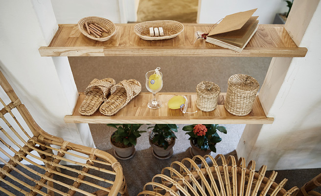 “저는 테이블이 다닥다닥 붙어 있는 카페가 너무 싫었어요.” 널찍한 실내에 테이블이 겨우 다섯 개인 이유를 물었더니 신혜경 대표로부터 돌아온 말이다. 그러고 보니 국내외에서 들여온 라탄과 마크라메로 채워진 공간, 라탄 파라솔이 펼쳐져 있는 테라스 모두 여유롭고 한가하다. 기존의 쇼룸을 서교동으로 이전하면서 새롭게 붙인 이름은 ‘라비데마히(La Vie des Maries)’. 프랑스어로 ‘결혼생활’이라는 뜻으로, 실제로 내년에 결혼을 생각하고 있는 두 대표는 이곳을 신혼집처럼 자신들이 좋아하는 소품으로 가득 채웠다. 이들이 쇼룸에서 라탄과 함께 자주 선보이는 아이템도 바로 편안한 커플 룩. 소꿉장난하는 것처럼 귀여운 식기에 담겨 나오는 아포카토나 직접 만들어 먹는 토스트 등 메뉴들도 아기자기하다.