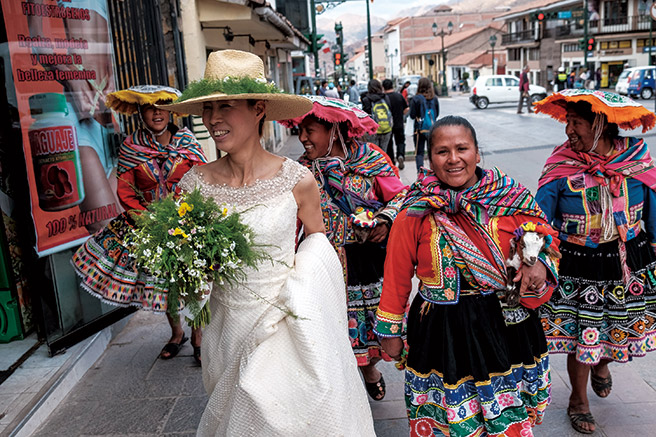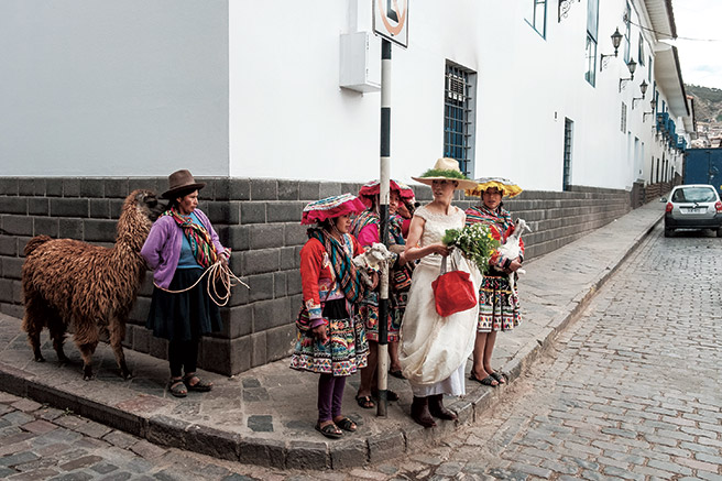 여전히 전통 의상이 일상복인 쿠스코 시민들. 웨딩드레스를 입은 금발의 동양인이 신기했는지 계속 따라다닌다.