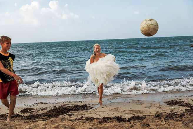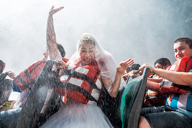 웨딩 드레스 차림으로 어떤 모험이든 즐겼다.
