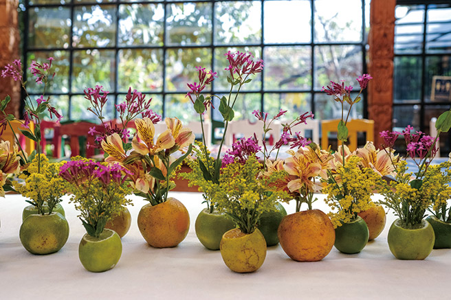 지난 여행에서 받은 충격이 채 가시지도 않았는데, 우리는 다시 카메라를 장만하고 남미행 항공권을 알아봤다. 이쯤에서 남미 여행을 접기에는 그 대륙에 밟지 못한 구석이 너무 많았다. 이번에는 멕시코의 한 지역에 정착해 그곳의 삶을 영위하며 스페인어를 배우기로 했다. 유명 관광지들을 뒤로한 채 가난한 산골 마을 산크리스토발데라스카사스에 여장을 풀었다. 그곳에서 운 좋게 대궐 같은 집을 빌리고, 착실히 스페인어 학원과 살사 학원에 등록했다. 두 달 동안 내 스페인어와 살사 실력은 답보 상태에 머물렀지만, 어김없이 잊지 못할 추억을 쌓아갔다. 하루는 우리가 빌린 집의 주인이 운영하는 레스토랑을 지나는데, 꽃 무더기가 널브러져 있었다. 멀쩡한 꽃이 버려지는 게 안타까워 주인아저씨한테 허락을 받고 꽃을 다듬었다. 시들어가던 꽃에 손길이 닿자 조금씩 화사한 빛을 되찾는 모습에 나는 주체할 수 없는 흥분감에 젖어 작업을 이어갔다. 놀란 주인아저씨는 다음 날 파티가 있다며 꽃 장식을 해줄 것을 부탁했다. 다음 날 아침 꽃 시장에 들러 재료를 고르는데, 시골이어서 꽃 종류가 한정적인 데다 마음에 드는 꽃병은 아예 보이지 않았다. 나는 장고 끝에 시장에 널려 있는 레몬과 오렌지를 한아름 샀다. 크기와 색이 제각각인 레몬과 오렌지의 윗동과 밑동을 잘라 테이블에 고정한 후 꽃을 꽂았다. 꽃을 꽂은 크고 작은 과일을 한데 모으니 오밀조밀하고 화사한 게 제법 볼만했다. 커트러리와 와인 잔에도 꽃을 하나씩 묶었다. 그때부터 나는 지역에서 열리는 행사에 불려 다니며 공간을 꽃으로 채워나갔다. 그 과정을 반복하며 내가 꽃으로 사람들을 행복하게 하는 사람이라는 사실을 오랜만에 새삼 깨달았다.