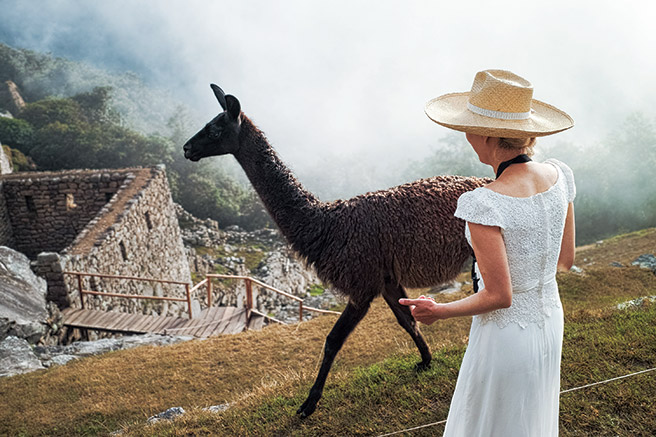 마추픽추에서 라마와 함께.