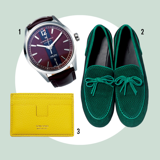 1 컬러 배색이 들어간 가죽 스트랩 워치는 1백24만원, Hamilton.