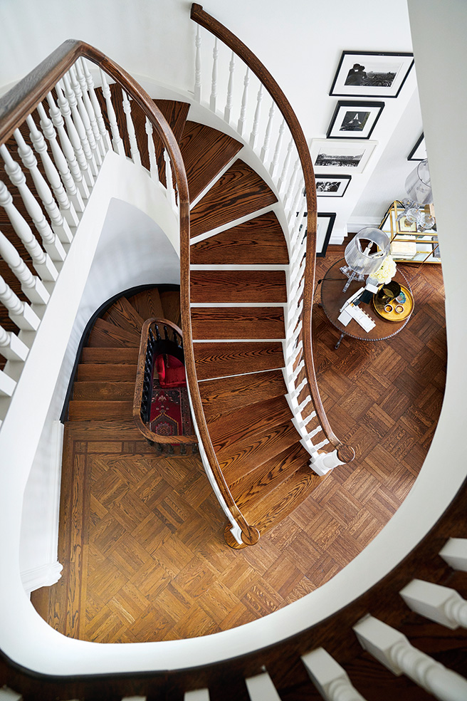 타운 하우스의 웅장한 계단. 벽면에 사용한 페인트는 ‘심플리 화이트’ 컬러로 Benjamin Moore.