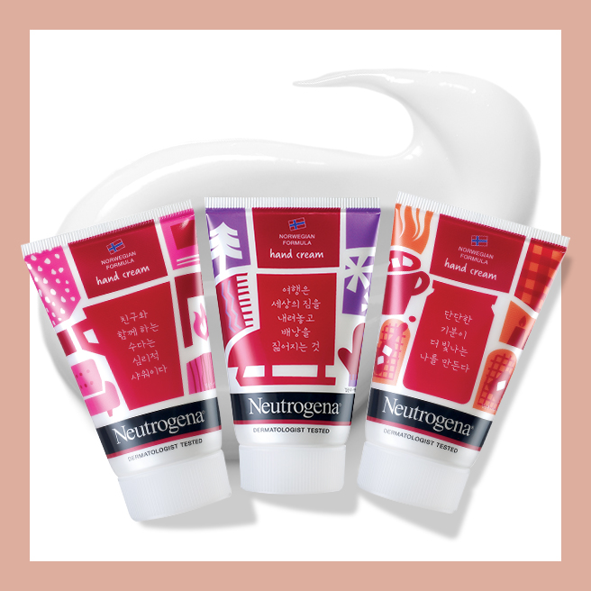 보습의 대명사 뉴트로지나 노르웨이젼 포뮬러는 영하 40℃까지 내려가는 혹한에서도 비단 같은 손을 유지하는 노르웨이 어부에게 영감을 받아 탄생한 라인이다. 어느 때보다 극한 추위가 예상되는 올 겨울, 뉴트로지나는 노르웨이젼 포뮬러의 이런 북유럽 헤리티지와 따뜻한 보습력을 리미티드 패키지로 표현했다. 김은주 작가의 <기분을 만지다>에서 발췌한 가슴이 따뜻해지는 여섯 가지 문구와 휘게 감성의 일러스트레이션을 패키지에 담은 것. ‘휘게(Hygge)’는 ‘웰빙’을 뜻하는 노르웨이어에서 비롯된 말로 덴마크어로는 ‘편안하게, 함께, 따뜻하게’를 뜻한다. 좋은 음식을 먹고, 좋은 환경에서 운동을 열심히 하는 웰빙 라이프에서 한 발 더 나아가 큰 지출을 하지 않더라도 가족이나 친구, 동료와 함께 지금 이 순간을 최대한 만끽하고 즐기는 행복함, 편안함 등의 감성까지 포함하는 라이프스타일이다. 제주도에서 소박하지만 행복한 삶을 살고 있는 이효리와 이상순 부부가 대표적인 예. 북유럽에서 시작됐다는 것 외에도 마음과 몸이 촉촉하고 따뜻해지며, 가심비까지 충족시켜 준다는 점, 그리고 진한 겨울을 보낼 수 있도록 도와준다는 점에서 뉴트로지나의 노르웨이젼 포뮬러 리미티드 에디션과 휘게 라이프는 꼭 닮아 있는 듯하다.