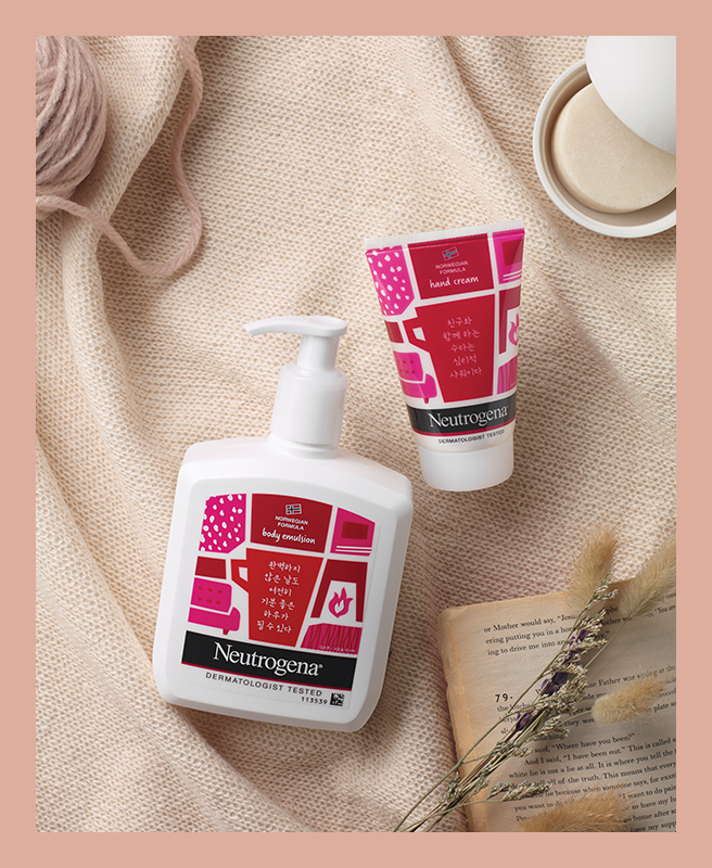 극강 보습의 대명사 뉴트로지나의 노르웨이젼 포뮬러 바디에멀젼과 핸드크림이 3배 더 진한 보습 성분과 휘게 감성을 담은 패키지로 돌아왔다. 도서 <기분을 만지다>의 감성적인 여섯 가지 문구를 담은 뉴트로지나 노르웨이젼 포뮬러 바디에멀젼과 핸드크림 리미티드 에디션을 만나보자.