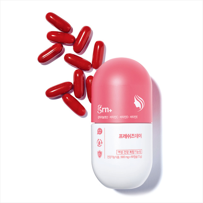 감마리놀렌산과 비타민 C·D·E가 들어 있어 피부와 뼈 형성에도 굿. 프레쉬즈 데이, 30일분 4만4천원, Grn+.