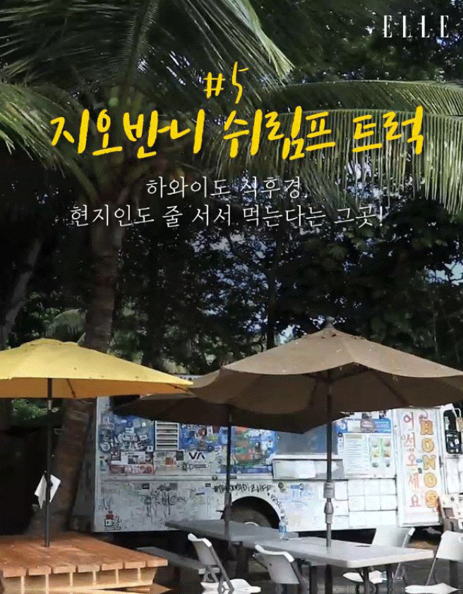 1993년 지오반니에 의해 카후쿠 지역 푸드 트럭에서 처음 판매된, 전통 있는 새우 트럭이다. 현재 할레이바의 서퍼들과 관광객들에게도 인기 있는 쉬림프 트럭으로 매콤 달달한 맛이 특징. 평일에도 기본 30분 이상 줄을 서야 맛볼 수 있으니 참고하시길.