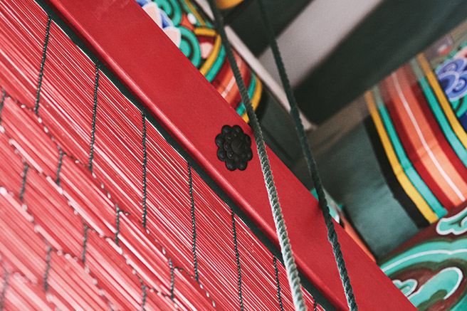주렴은 발을 만들고 지지대와 함께 옻칠한 후 명주실을 꼬아 거북의 등껍질 문양으로 엮은 후 가장자리는 무명 천으로 마감했다.