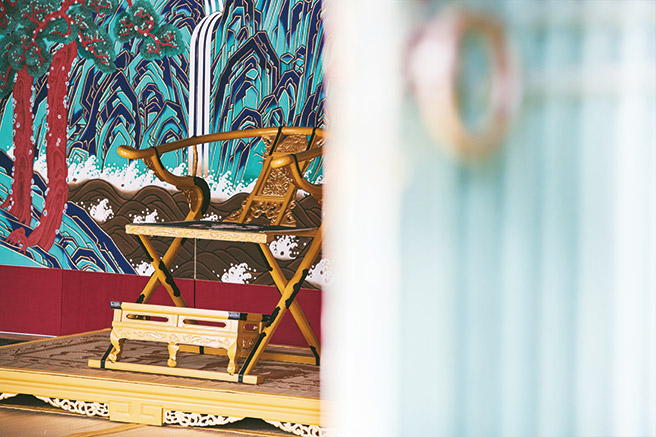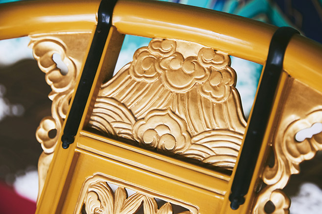 용교의는 고종을 상징하는 금분칠을 했다. 해의 방향에 따라 다른 빛을 내 은은한 화려함을 더했다.