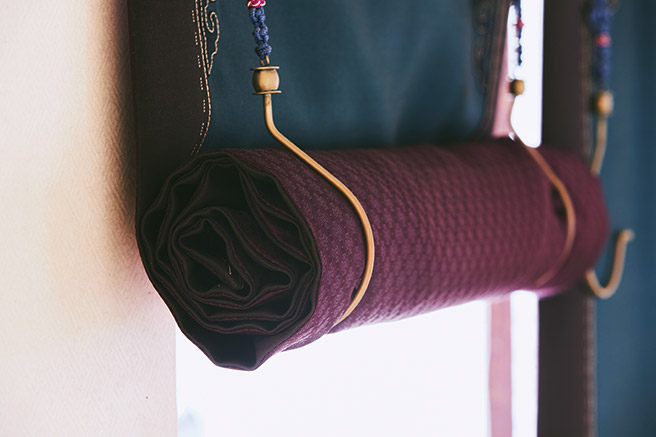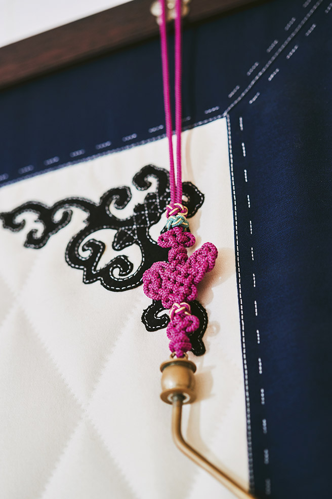 각각 다른 색으로 염색한 실을 꼬아 매듭을 만들어 걸었다.