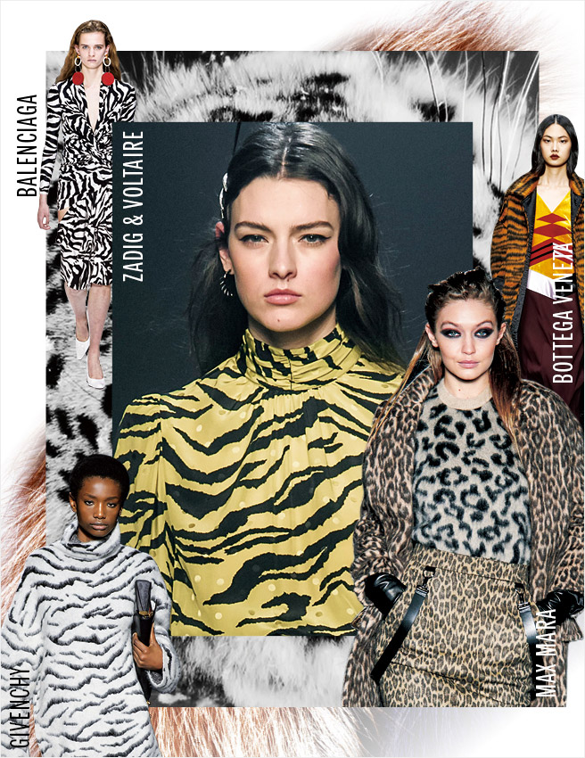 거침없이 벌판을 누비는 강렬한 맹수부터 한가로이 풀을 뜯는 얼룩말까지 이번 시즌 디자이너들의 시선은 일제히 사파리로 향했다. 자유분방한 애니멀 프린트가 트렌드를 점령하고 나선 것. 레오퍼드 패턴의 코트에 브라톱을 이너 웨어로 매치해 관능미를 드러낸 프로엔자 스쿨러, 각기 다른 패턴의 믹스매치로 대담한 스타일링을 선보인 막스마라 등 런웨이 곳곳에서 야생의 기운을 감지할 수 있다. 과거 애니멀 프린트를 대변하던 수식어가 치명적인 섹시미였다면 이번 시즌에는 ‘우아함’을 새로운 명제로 추가할 것. 넉넉한 실루엣의 지브라 패턴 니트에 펜슬 스커트를 매치한 지방시나 벨트를 활용해 잘록한 허리선을 강조한 마이클 코어스의 컬렉션이 좋은 예. 올겨울, 우아한 매력으로 한층 업그레이드된 애니멀 프린트의 도발에 응답해 보는 건 어떨는지.