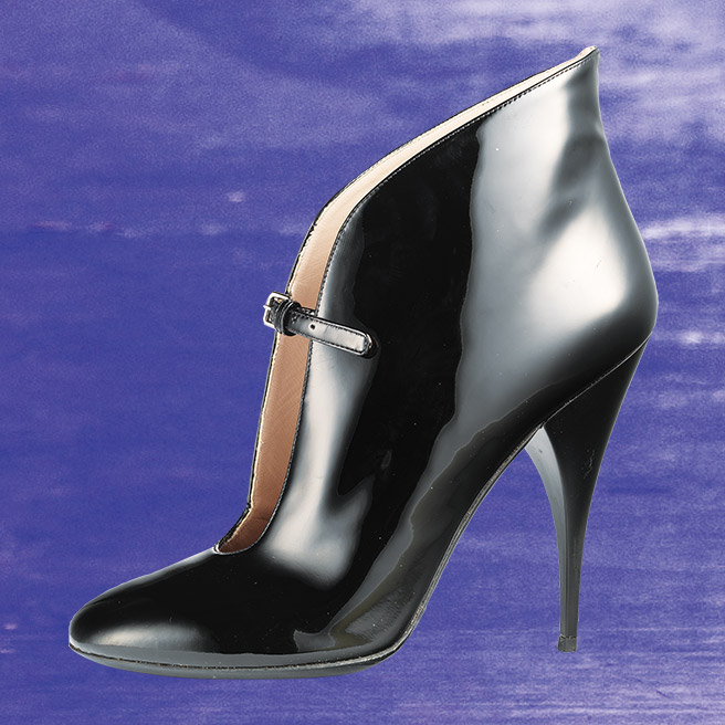 페이턴트 소재의 앵클 부티는 가격 미정, Miu Miu.