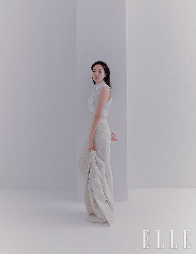 대화 내내 평범함을 강조하지만 <엘르> 커버를 장식하는 건 평범한 사람은 할 수 없는 일이죠. 김고은을 보는 사람들이 어떤 영감이나 메시지를 받았으면 하나요 다들 스스로를 좀 다독이며 살았으면 좋겠어요. 내가 열을 가졌다면, 한 개의 모자란 점에 너무 집중하기보다 나머지 아홉 개가 얼마나 빛을 발하는지 들여다봤으면 해요. 저부터 그렇게 하고 싶어요.