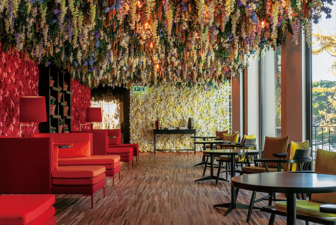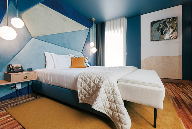 포르투의 젖줄인 도우로 강변에는 포트 와인 창고가 쭉 늘어서 있다. 토렐 아방가르드 호텔은 생기 넘치는 강변의 풍경이 한눈에 펼쳐지는 언덕 위에 있다. 이곳은 현재 포르투에서 가장 ‘힙’한 아트 디스트릭트로도 유명하다. 호텔 위치와 이름에서 알 수 있듯, 토렐 아방가르드는 현대의 전위 예술을 호텔의 무기로 삼았다. 로비에 들어서면 우선 천장과 벽면을 가득 채운 화려한 꽃 장식에 시선을 빼앗길 것. 많은 부티크 호텔이 로비나 레스토랑보다 간과하기 일쑤인 객실은 다행히도 이 호텔에서 가장 매력적인 공간이다. 총 47개의 객실 모두 한 시대를 풍미했던 전위적인 예술가와 디자이너, 건축가, 문학가 등의 이름을 붙이고 각기 다른 디자인으로 꾸며졌다.