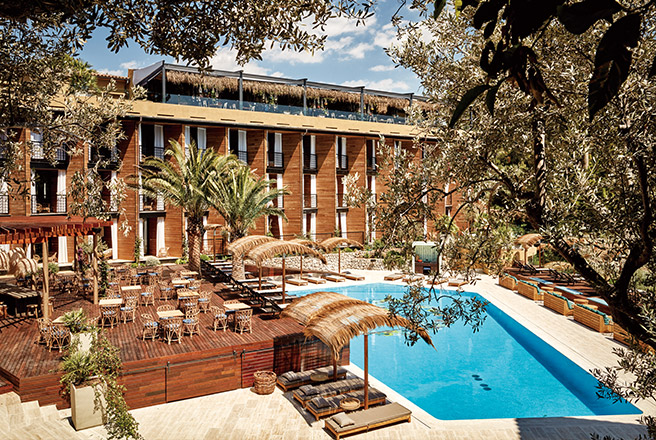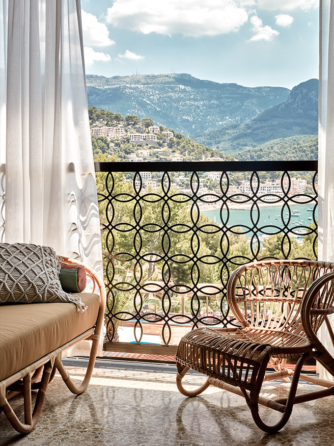 지난 7월에 문을 연 비키니 아일랜드 앤 마운틴 호텔 포트 드 솔러(이하 비키니 호텔)는 팔마 드 마요르카에서 자동차로 약 40분 거리의 북쪽 해변에 자리 잡았다. 마요르카의 소란스러움과 화려함과 멀리 떨어져, 둘만의 시간에 집중할 수 있다는 의미다. 잠에서 깨어나 발코니로 나서면 트라문타나 산의 웅장한 자태와 평온하게 반짝이는 지중해가 반긴다. 주변 환경뿐 아니라 호텔 또한 차원이 다르다. 1970년대에 지어진 호텔을 재건축해 마요르카 자연 소재를 적용한 독일식 바우하우스 스타일로 재탄생시켰다. 스위트룸을 포함한 총 114개의 객실은 선베드 혹은 해먹이 놓인 발코니를 장착했다. 인테리어는 샌프란시스코에서 날아온 ‘집셋(Gypset)’ 스타일로 꾸몄는데, 객실 곳곳에서 발견되는 평화 심벌, 보헤미언풍의 소품이 1960년대 말~1970년대 초의 향수를 자극하며 이국적인 분위기를 자아낸다. 여기에 노마드 감성을 더하는 것이 있으니, 바로 ‘네니 레스토랑’. 암스테르담, 베를린, 파리, 빈, 취리히 등에 자리한 독일의 라이프스타일 호텔 체인 ‘25아워스 호텔’에서 만날 수 있는 이스라엘식 레스토랑으로, 후무스와 샥슈카를 비롯해 중동식 지중해 음식들을 맛볼 수 있다. 한 가지 더. 비키니 호텔에선 광란의 파티 대신 훌륭한 칵테일 바가 기다리고 있다는 사실! 수영장 옆의 ‘피키니 바’와 라운지에 자리한 ‘동키 바’는 독일 최고의 바텐더로 손꼽히는 요르그 메이어가 바 메뉴를 맡았다. 해 질 녘 이곳 테라스에서 선셋이 내려앉은 항구의 풍경을 감상해 보자. 마요르카가 더없이 로맨틱한 섬으로 기억될 것이다.