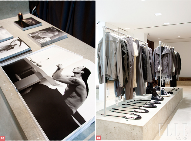 | 플래그쉽 스토어에는 릭 오웬스의 모든 것을 담고 있다. 남성과 여성 컬렉션, 다크 섀도우의 데님라인, 릴리스의 저지라인, 팔레 로얄의 모피라인, 그리고 액세서리 컬렉션. 이 뿐만 아니라 그가 평소 좋아하는 서적과 음반, DVD도 만날 수 있다. 숍에서 흐르는 음악은 이전부터 지금까지 릭이 즐겨 듣는 음악으로 그의 아이툰즈 라이브러리에 저장된 목록의 음악으로 초이스. 하나 하나 손수 작업한 커튼부터 평소 내추럴 무드를 강조 하 듯, 신경 쓴 자연 조명까지 이 곳은 릭의 감성을 함께 공유하고 느낄 수 있는 곳이었다. |