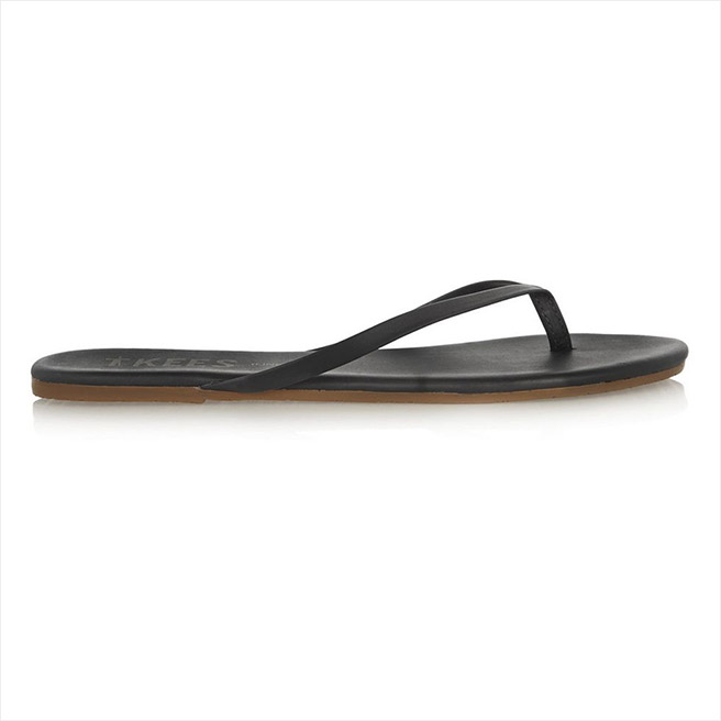 블랙 레더 소재의 플립플랍은 Tkees by Net-a-Porter.