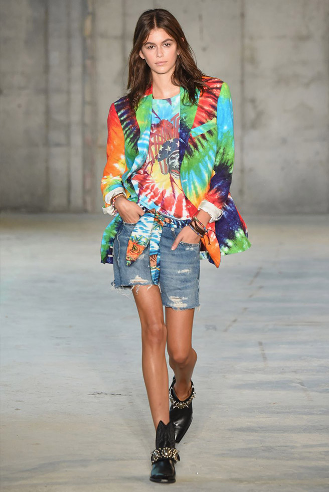 프라다의 60년대 스타일의 쉬프트 드레스와 펜슬 스커트부터 R13의 블레이저와 후디까지! 타이다이, 즉 홀치기 염색 효과가 2019년 런웨이 곳곳에서 포착됐다. 비록 대세는 아닐지더라도 타이다이 트렌드는 추억을 불러일으키기 좋은 패션 디테일이다. 6,70년대 히피 무드와 함께 떠오른 타이다이는 반체제운동의 상징이기도 하다. 롱드레스나 아우터 같은데 활용되기도 하지만 타이다이 기법을 즐기기에 좋은 건 바로 티셔츠! 날이 풀리면 타이다이 티셔츠에 데님 팬츠를 매치해도 좋을 듯 하다.