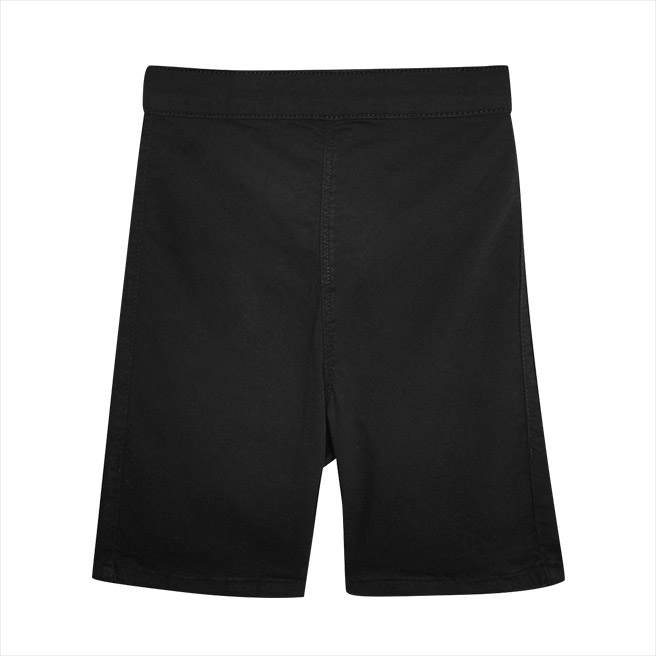 군더더기 없이 심플한 디자인의 블랙 스트레치 쇼츠는 Topshop.