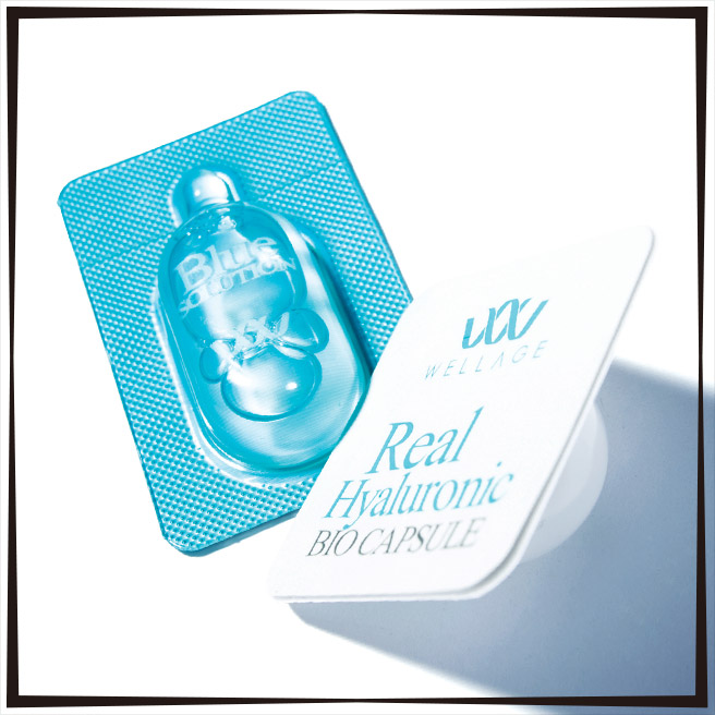 동결 건조한 히알루론산 캡슐에 농축 앰플을 떨어트려 믹스해 바른다. 묽은 오일처럼 윤기를 남가고 한 번에 하나씩 쓸 수 있어 여행 갈 때 갖고 다니기 편하다.
