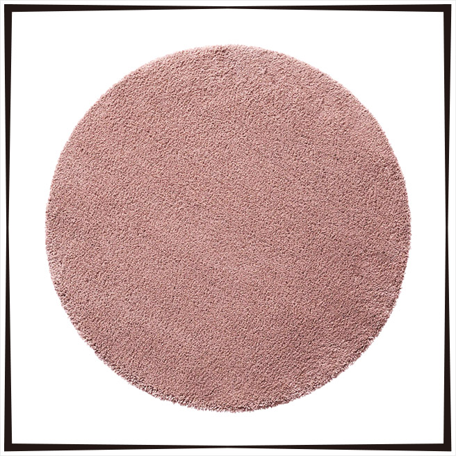파일이 두터워 밟으면 발이 살짝 파묻히는 더스티 핑크 컬러의 러그 ‘오둠’은 Ikea.