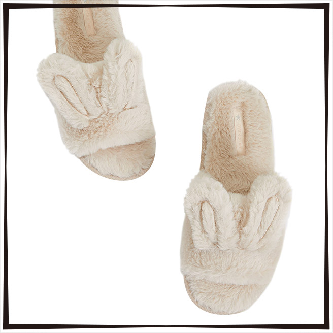 토끼 귀 모양이 깜찍한 실내용 샌들은 Oysho.