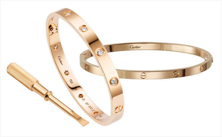 1969년 뉴욕에서 디자이너 알도 치풀로가 디자인한 러브 브레이슬릿은 우정과 사랑을 의미하는 까르띠에의 전설적인 아이콘 중 하나. 중세의 전사가 아내에게 매단 정조대에서 영감을 얻어, 특별 제작된 스크류 드라이버로 나사를 조여서 착용하는 이 브레이슬릿은 연인 간의 결합과 맹세 그리고 영원한 사랑의 순회를 상징한다. 러브 컬렉션은 클래식한 모델, 다이아몬드 세팅 버전, 네크리스와 이어링, 링에 이르기까지 다양한 스타일과 가격대로 구성된다. 여기에 기존 모델과 착용 방식은 동일하지만 보다 얇은 두께로 섬세한 우아함을 표현하는 뉴 러브 브레이슬릿이 추가돼 폭넓은 선택이 가능하다.