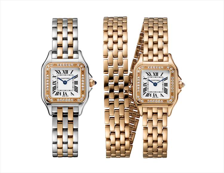 (순서대로) 팬더 드 까르띠에 주얼리 워치 핑크 골드 & 스틸 모델, 팬더 드 까르띠에 주얼리 워치 더블 투어 브레이슬릿 모델