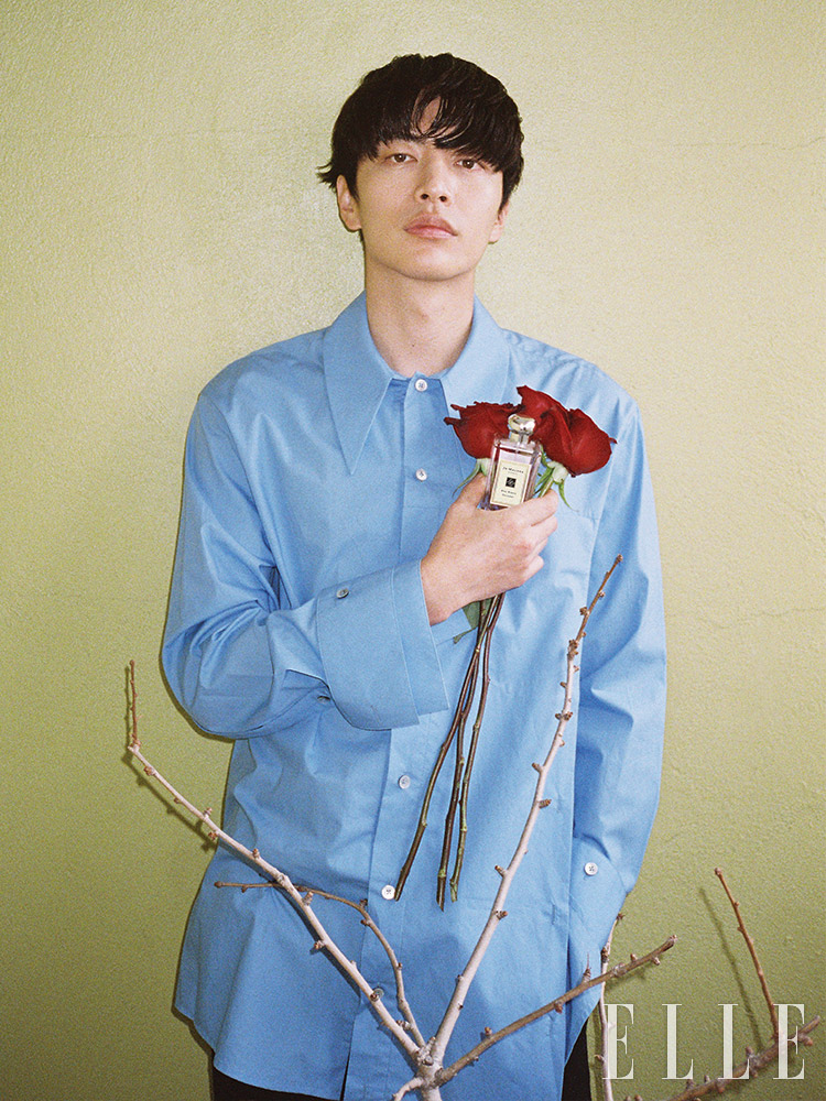 세계에서 가장 아름다운 장미 7종을 조합한 향이 현대적인 로맨스를 상징하는 레드 로즈 코롱은 Jo Malone London. 오버사이즈 칼라와 러플이 특징인 셔츠는 Wooyoungmi.
