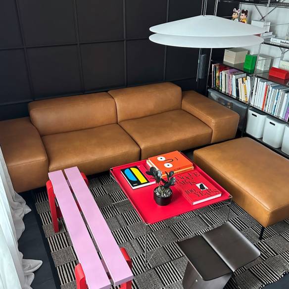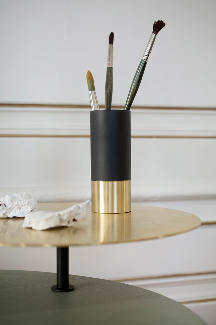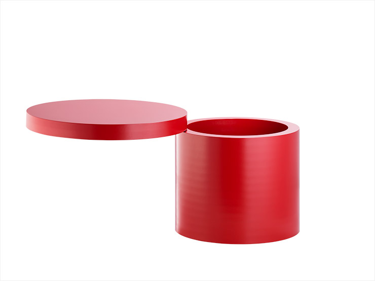 텍타의 사이드 테이블은 심플한 원통형인데, 상판을 살짝 누르면 상판이 돌아간다. 원통 안은 수납함으로 활용할 수도 있다(가격 310만원).