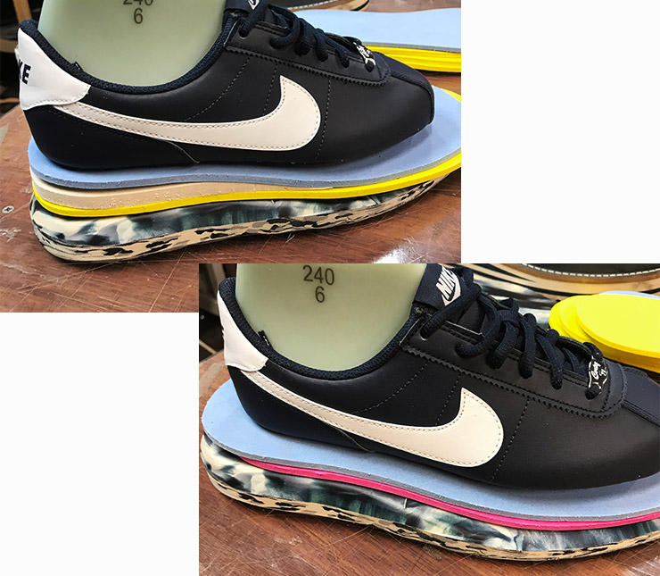 3. 스티치, 미드솔, 아웃솔의 컬러를 조합하여 디자인을 구상한다. 물론 굽의 높이도 정할 수 있다. 겹겹이 쌓아 올려 ‘키 높이 깔창’을 대신하기도 한다고.