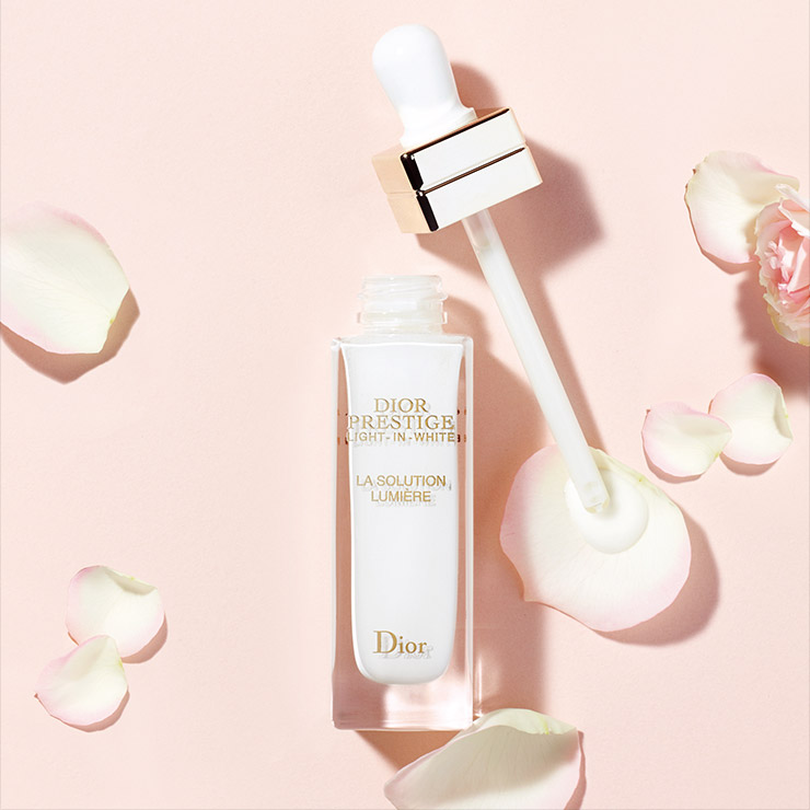 디올의 첫 번째 더모 화이트닝 세럼. 깃털처럼 가벼운 포뮬러로 맑고, 투명하고, 건강한 피부로 가꿔준다. 디올 프레스티지 라이트-인-화이트 라 쏠루씨옹 뤼미에르, 51만원대, Dior.