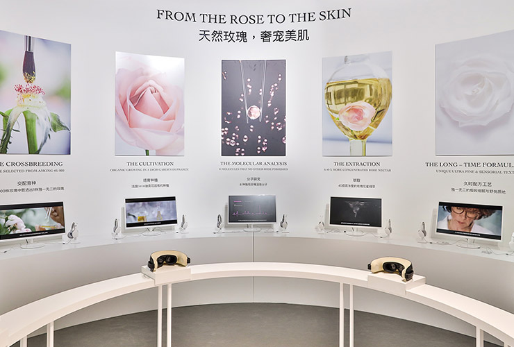 컨퍼런스 한편에 마련된 원형의 영상 체험 존에서 그랑빌 저택과 장미 정원, 노르망디 해안가를 간접 경험하자 오염되지 않은 자연환경을 만끽했을 무슈 크리스찬 디올의 유년기가 상상 속에 스쳤다. 장미 정원 사이에 난 길을 따라 발걸음을 옮겼고 더 로즈 랩 체험 존에 도달, VR 화면을 통해 로즈 드 그랑빌이 제품으로 탄생하는 과정 또한 생생하게 확인할 수 있었다.