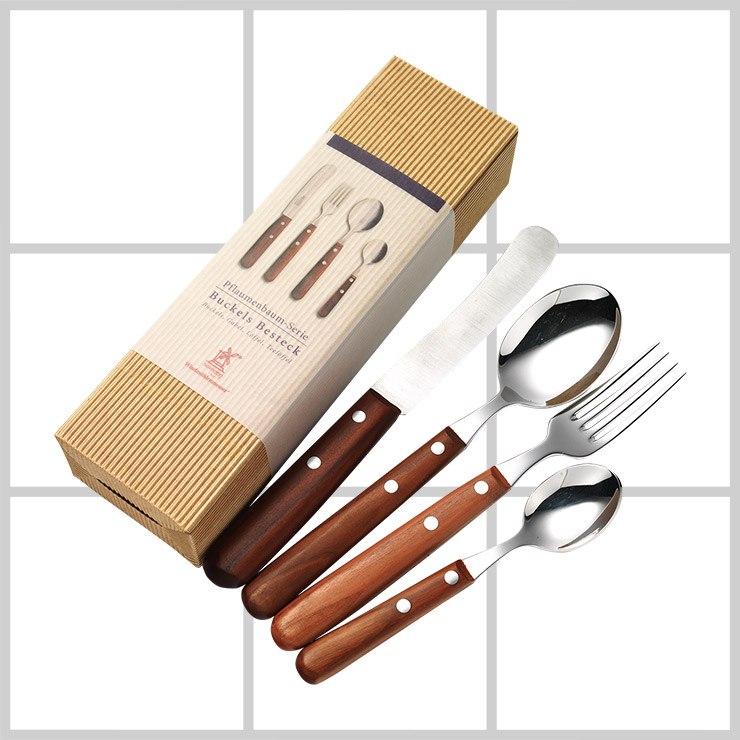 자두 나무로 제작된 원목 손잡이에 전통적인 리벳 장식이 매력적이다. 비스트로 타입의 커트러리 기프트 세트는 23만원대, Robert Herder by Studio June.