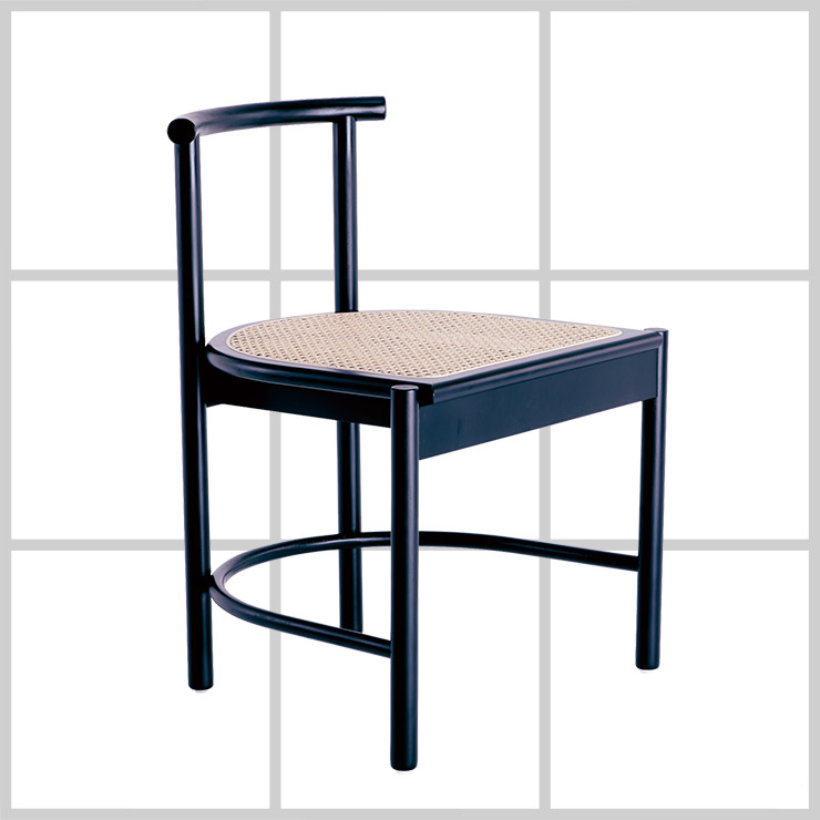 곡선 디자인과 라탄 소재가 배색된 원목 체어는 36만원, Lsh-furniture.
