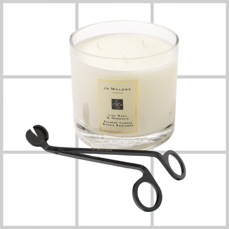 두 사람의 공간을 향으로 가득 채워줄 디럭스 캔들 라임 바질 앤 만다린은 30만3천원, 캔들의 그을림을 최소화하기 위해 필요한 윅 트리머는 6만5천원, 모두 Jo Malone London.