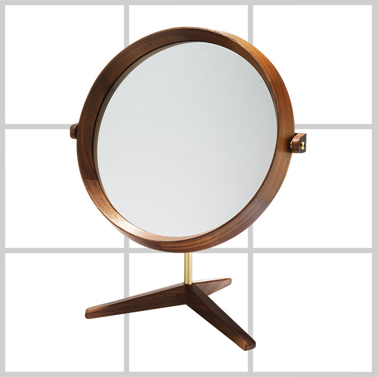 군더더기 없는 디자인이 오래 두고 보기에도 고급스럽다. 호두나무 원목으로 제작된 테이블 거울은 42만원, Monette.