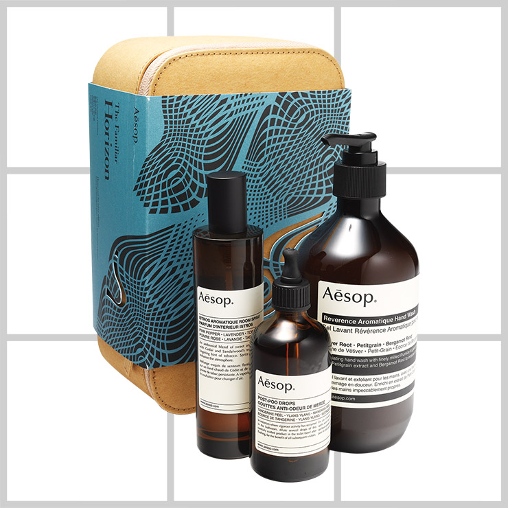 신혼의 에티켓을 위한 화장실 냄새 탈취제와 룸 스프레이, 핸드 워시가 구성된 기프트 세트는 아틀라스 오브 어트랙션 퍼밀리어 호라이즌, 12만9천원, Ae-sop.