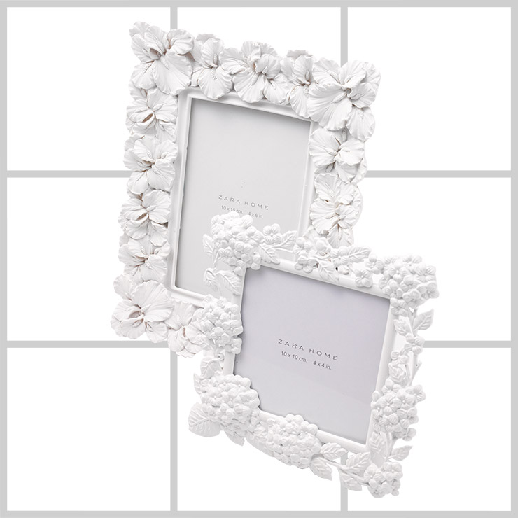 신혼 분위기가 물씬 풍기는 플로럴 장식의 세라믹 액자는 왼쪽 3만9천원, 오른쪽 2만9천원, 모두 Zara Home.