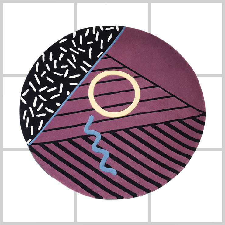 80년대 레트로 컨셉트로 빈티지 컬러 배색이 고급스러운 수제 러그는 44만9천원(800mm), Five & Dime.
