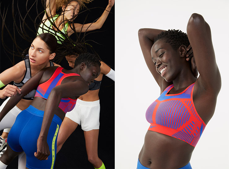 나이키는 운동화 플라이니트를 만드는 방식을 스포츠 브라 제작과정에 적용했다. 플라이니트는 이음새가 없고, 발의 모양에 꼭 맞는 경량 갑피 제작 방식이다. 이 기법을 적용한 스포츠 브라는 단 두 장의 홑겹 패널이 이음새 없이 연결되어 있다. 그동안 나이키에서 만든 하이-서포트 브라는 최대 41조각의 부품과 22곳의 이음새가 있었다. 박음질이 적다는 것은 그만큼 몸의 움직임이 유연할 수 있고, 압박감이 적다는 것! 게다가 무게도 기존의 것보다 30%나 가볍다. 나이키의 운동화 디자이너 팅커 햇필드가 ‘디자이너의 최종 목표는 타인의 문제를 해결하고, 그 디자인이 타인에게 잘 어울리고, 멋있어 보이게 하는 것’이라 말헸다. 2019년에 선보이는 나이키의 여성 스포츠 용품은 이 말과 그 뜻을 함께한다.