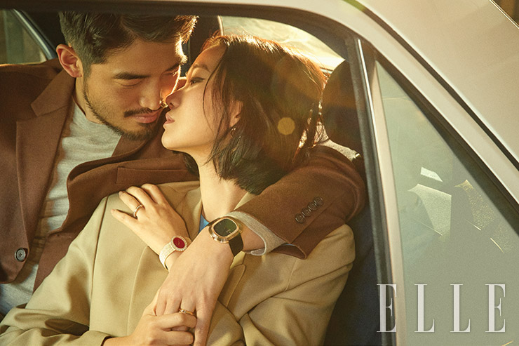 (정승민) 클래식한 앤디 워홀 워치, 핑크골드에 다이아몬드가 세팅된 포제션 링은 모두 Piaget. 베이식한 디자인의 재킷은 Avamolli. 톱은 H&M.